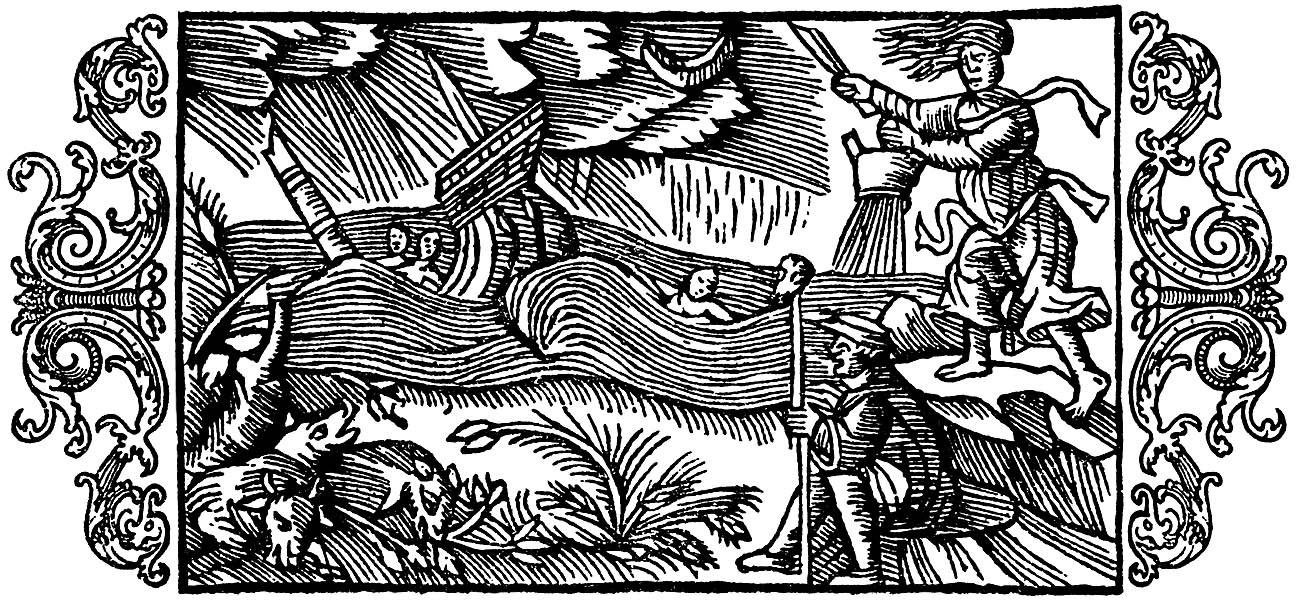 Witches conjuring up a storm. O. Magnus, Description of the Northern Peoples, 1558.